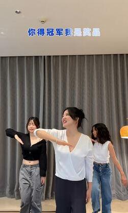 两个小女孩跳得越来越顺。Ava今年11岁,长得像妈妈,五官深邃,笑起来很有感染力。侄女也不甘示弱,模仿得有模有样。到了副歌部分,三人一起跳,配合得天衣无缝,活脱脱像一场家庭小舞台。